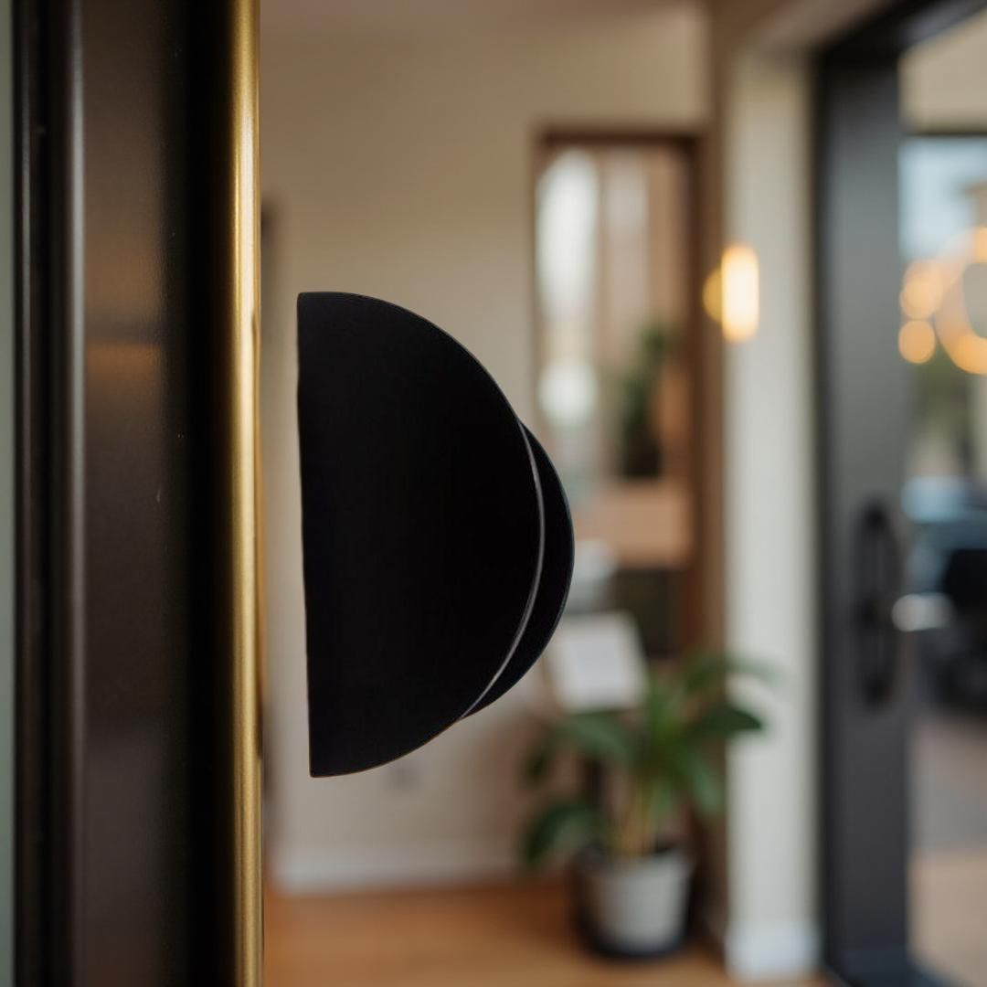 Puxador Duplo Meia Lua Semi Redondo Preto 20cm em alumínio. Ideal para portas de vidro temperado e madeira até 4cm. Design moderno e resistente.