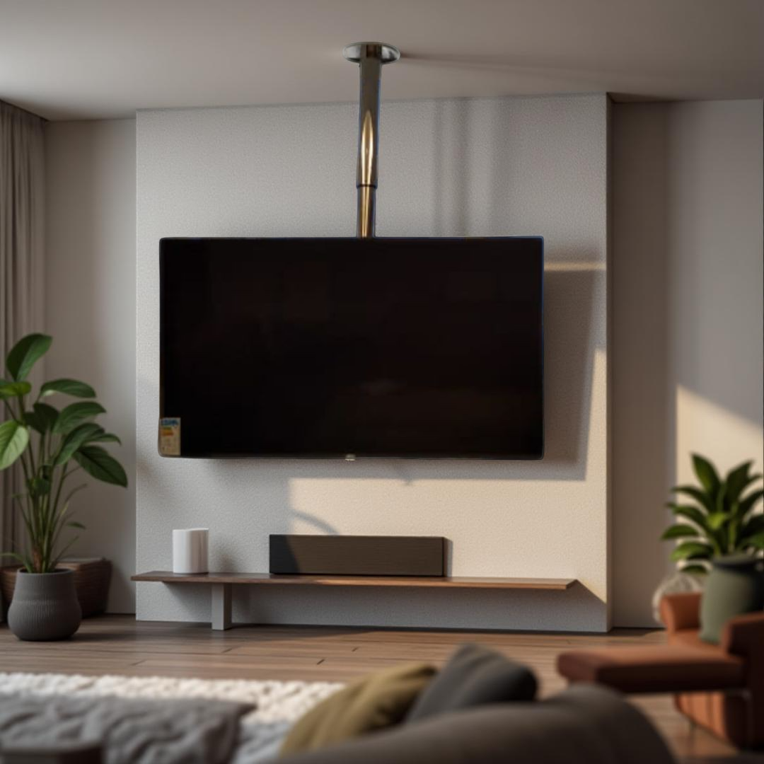 Fabricamos suportes de TV sob medida em Colombo com atendimento em Curitiba e região. Modelos de teto, parede e móveis, fixos ou giratórios.