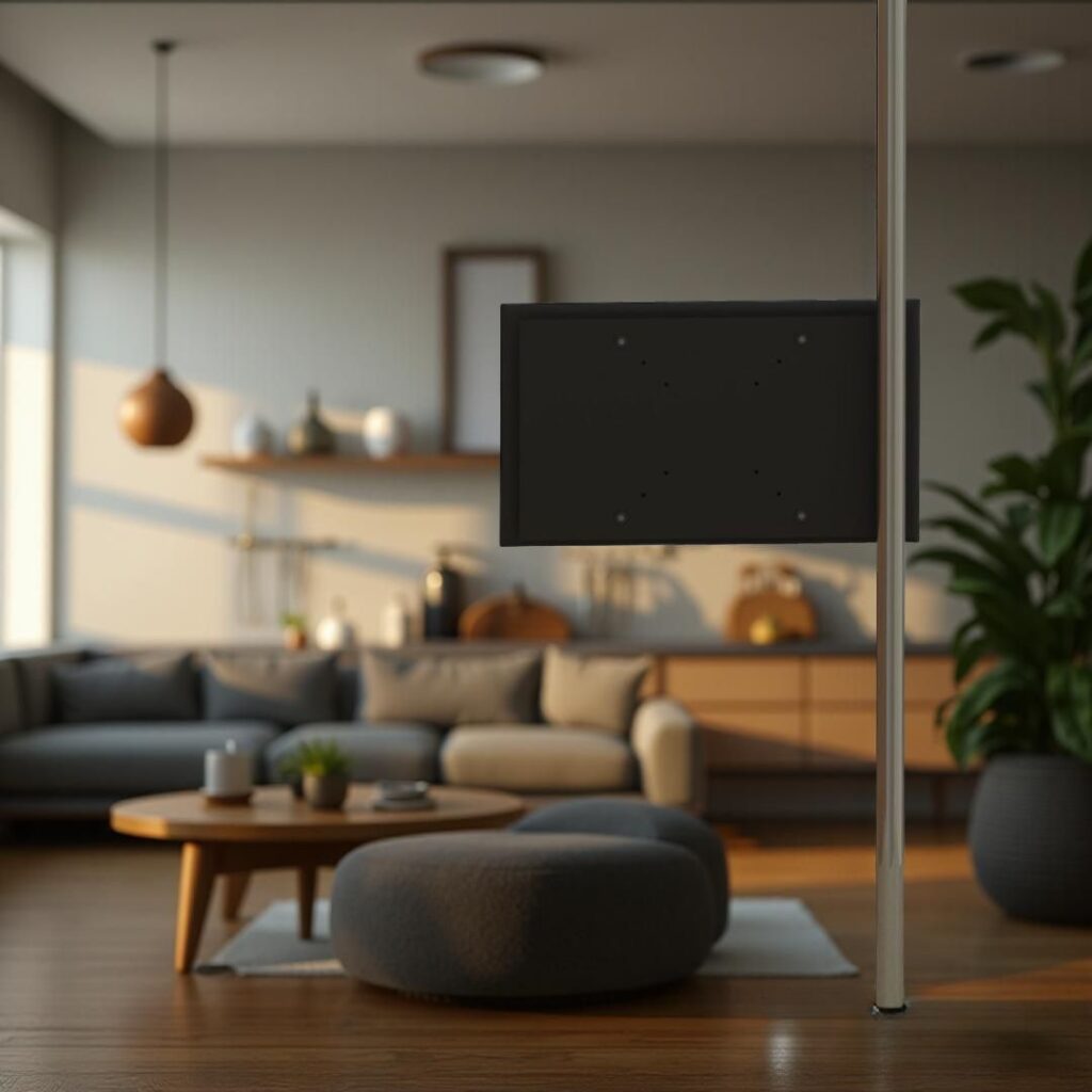 O Suporte Giratório para TV Modelo Bandeira é a solução ideal para quem deseja instalar a TV na lateral de uma parede ou em um canto, integrando perfeitamente dois ambientes.